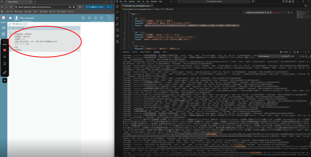 このデモで見ていただきたいのは、単なる会話のスムーズさだけではありません。AIエージェントは裏側で、コールセンターの実業務に即したロジックを正確に実行しています。